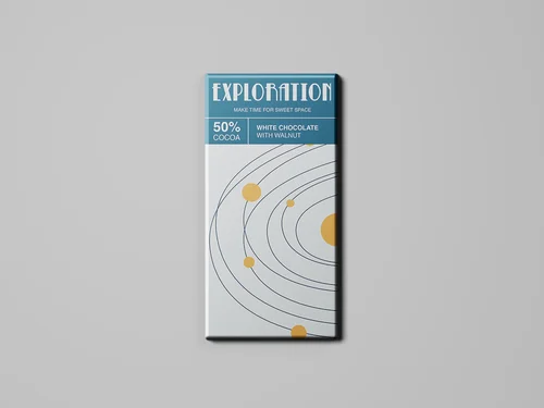 “Exploration Chocolate Bars” is a series of four different flavors chocolate bars based on the same theme of space. Each chocolate bars has different space elements, such as spaceship, astronauts, planets, moon and stars. For box, I use the concentric circles to represent the whole universe.