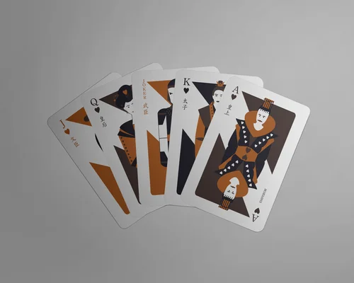 The Dynasty Playing Cards are designed based on Chinese historical figures. The headwear and clothing in the card are inspired by culture in Tang Dynasty, and the difference of figure represents the hierarchy of Tang Dynasty from king to military generals. The back side of the playing cards is inspired by the design of window in Tang dynasty. The box is the imperial palace that integrate all visual elements from the playing cards.