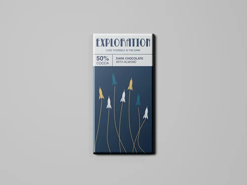 “Exploration Chocolate Bars” is a series of four different flavors chocolate bars based on the same theme of space. Each chocolate bars has different space elements, such as spaceship, astronauts, planets, moon and stars. For box, I use the concentric circles to represent the whole universe.